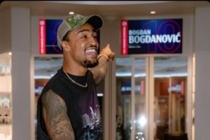 体育资讯8月9日讯 快船官方社媒发布球队新援约翰-科林斯来球队报到的照片,他在找自己的更衣柜时发现前老鹰队友博格丹的柜子。