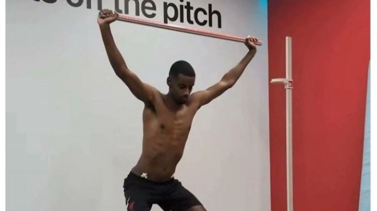 精瘦!利物浦晒伊萨克体检视频,后者身材遭调侃:罢训还绝食了?