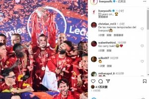 2019-2020赛季,利物浦提前7轮锁定英超冠军,在2020年7月22日主场对阵切尔西的比赛之后,利物浦球员们捧起队史首座英超冠军奖杯。