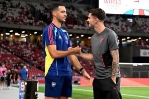 阿森纳中场梅里诺更新社媒动态,晒出与米兰球员普利西奇寒暄的照片,配文:“很高兴这么久之后见到你,普利西奇,祝未来一切顺利。”