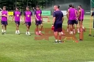 体育资讯8月3日讯 《每日体育报》报道,巴萨在训练中用洒水器降温。
